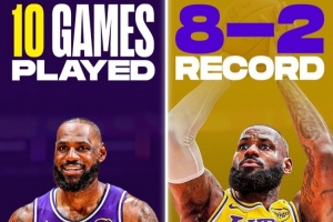 詹姆斯復出之后,湖人取得8勝2負的戰(zhàn)績,他個人的表現(xiàn)也逐漸提升。復出前五場比賽,詹姆斯場均出戰(zhàn)32.3分鐘拿到15.2分4.0籃板7.0助攻,三項命中率46/33/52%;后五場場均35.8分鐘砍下22.0分7.8籃板7.6助攻,命中率50/37/82%。