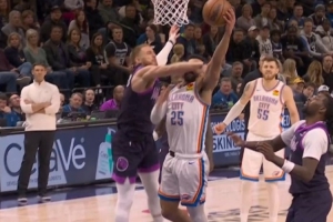 GIF-阿杰伊·米切爾突破上籃被迪文岑佐一巴掌扇臉上