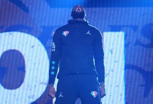 25年全明星賽,詹姆斯在賽前采訪時臨時宣布,因腿部/腳踝不適,他不會出戰(zhàn)。