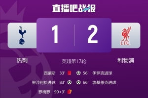 體育資訊12月21日訊 英超第17輪,利物浦客場2-1擊敗熱刺。