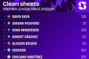 本場過后,從23-24賽季算起(注:拉亞在2023年夏天加盟阿森納),拉亞在英超比賽中已38次零封對手,該統(tǒng)計數(shù)據(jù)排在同期英超各隊門將榜首(排在第2、第3位的分別是皮克福德,迪恩-亨德森)。