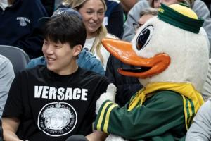 相關(guān)新聞:??老鄉(xiāng)見老鄉(xiāng)!俄勒岡在開拓者主場比賽 楊瀚森場邊觀戰(zhàn)支持林葳