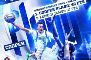 杜克官方曬出了弗拉格19歲前的幾項紀錄的數(shù)據(jù)海報: