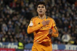 安切洛蒂一直關(guān)注著年僅21歲的貢薩洛,并在2023/24賽季國(guó)王杯四分之一決賽中給予了這位小將一展身手的機(jī)會(huì)。當(dāng)場(chǎng)比賽中,皇馬客場(chǎng)挑戰(zhàn)萊加內(nèi)斯。貢薩洛在比分2-2時(shí)替補(bǔ)登場(chǎng),并在補(bǔ)時(shí)階段打入絕殺進(jìn)球,幫助球隊(duì)晉級(jí)四強(qiáng)。憑借整賽季在皇馬B隊(duì)的出色發(fā)揮,他最終以25粒進(jìn)球刷新了西班牙第三級(jí)別聯(lián)賽的單賽季進(jìn)球紀(jì)錄。
