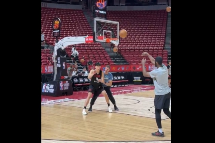 >>??右側(cè)45度NBA三分線5中4!楊瀚森在斯普利特陪同下練外線投籃" />