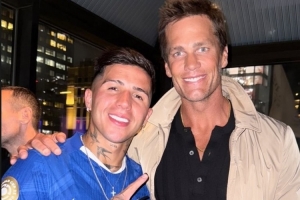 NFL傳奇巨星湯姆-布雷迪來到現(xiàn)場觀看比賽,恩佐社媒曬出與布雷迪的合照,并配上了山羊(GOAT)的表情符號。
