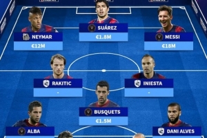 前鋒:內(nèi)馬爾(桑托斯,1200萬)、蘇亞雷斯(邁阿密國(guó)際,180萬)、梅西(邁阿密國(guó)際,1800萬)