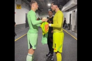 體育資訊6月30日訊 拜仁在世俱杯16強(qiáng)戰(zhàn)4-2淘汰弗拉門戈,諾伊爾和對(duì)方門將奧古斯汀-羅西在賽后交換了球衣。