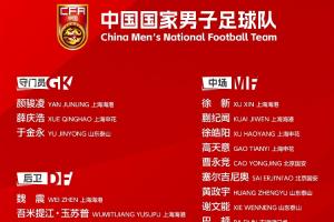 徐新(上海海港/31歲)、蒯紀(jì)聞(上海海港/19歲)、徐皓陽(上海申花/26歲)、高天意(上海申花/26歲)、曹永競(jìng)(北京國安/28歲)、塞爾吉尼奧(北京國安/30歲)、黃政宇(山東泰山/28歲)、謝文能(山東泰山/24歲)、巴頓(天津津門虎/29歲)、廖錦濤(大連英博/25歲)