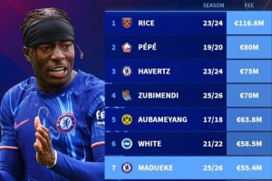 體育資訊7月19日訊 德國(guó)轉(zhuǎn)會(huì)市場(chǎng)統(tǒng)計(jì)表明,馬杜埃凱是阿森納隊(duì)史第7貴的引援,同時(shí)也是切爾西隊(duì)史第6貴的轉(zhuǎn)出球員。