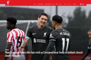 體育資訊7月21日訊 利物浦官網(wǎng)消息,達(dá)爾文-努涅斯在利物浦5-0戰(zhàn)勝斯托克城的閉門友誼賽中上演帽子戲法。