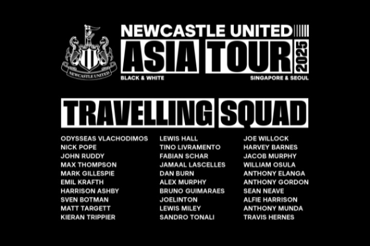 體育資訊07月24日訊 紐卡官方公布了今夏前往亞洲參加季前賽的名單,新援伊蘭加在列,但球隊(duì)主力前鋒伊薩克卻不在名單中。