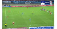 第40分鐘,鐘義浩轉(zhuǎn)身抽射破門后Siu慶祝,VAR確認(rèn)進球有效,河南1-0新鵬城。