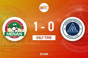 上半場(chǎng)比賽結(jié)束,河南1-0深圳新鵬城。