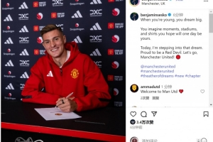 塞斯科配文:“當(dāng)你年輕時(shí),你會(huì)懷揣遠(yuǎn)大夢想。你會(huì)想象那些時(shí)刻、球場和球衣,期盼有一天它們屬于你。如今,我正實(shí)現(xiàn)這個(gè)夢想。很自豪成為紅魔的一員。加油,曼聯(lián)!”