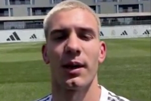 體育資訊8月14日訊 北京時(shí)間今晚19點(diǎn),皇馬新援馬斯坦托諾在皇馬正式亮相?;蜀R社媒曬出馬斯坦托諾向球迷問(wèn)好的視頻。