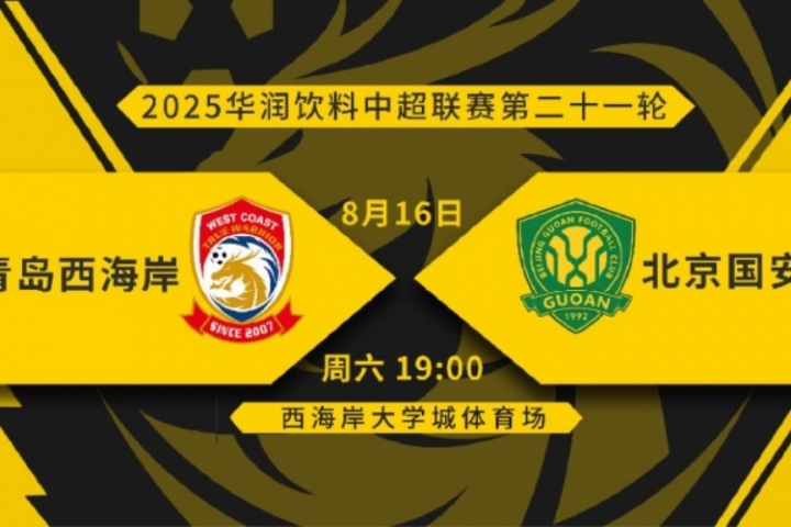 體育資訊08月16日訊 北京時(shí)間19點(diǎn),中超第21輪,青島西海岸vs北京國(guó)安,雙方首發(fā)公布。