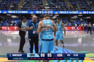 本場比賽兩隊打得相當膠著,到最后時刻才決出勝負,烏拉圭最后兩回合回應(yīng)球都打進,美國男籃追三分不中,補籃打進。犯規(guī)戰(zhàn)術(shù)烏拉圭球員兩罰不中,但美國男籃后場三分不中,最終1分不敵對手。