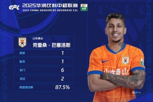 本場(chǎng)比賽,克雷桑先是在第22分鐘助攻澤卡破門(mén),隨后又在第30分鐘擴(kuò)大比分。憑借克雷桑的傳射建功,泰山隊(duì)最終取得一場(chǎng)酣暢的大勝。