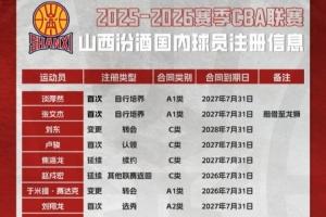 體育資訊9月1日訊 今天,山西男籃官方宣布了新賽季的國內(nèi)球員注冊信息,原文如下: