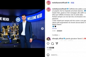 “國際米蘭將永遠(yuǎn)留在我心中。帶著感激之情,我向你們所有人告別,并祝愿你們未來贏得更多榮譽(yù)!滿懷感情地這么做?!泛盏?塔雷米?!?/p>