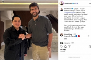 托希爾與皮克會(huì)面,他在社交媒體上曬出合照,配文:“與皮克會(huì)面,他是一位在足球最高級(jí)別賽事中贏得過(guò)多項(xiàng)冠軍頭銜的球員,包括俱樂(lè)部層面上的歐冠冠軍,以及代表西班牙國(guó)家隊(duì)贏得的歐洲杯和世界杯。我們討論了全球足球趨勢(shì)以及印尼足球的發(fā)展。”