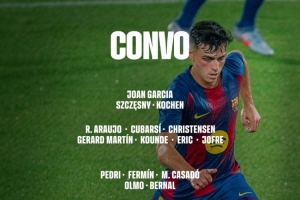 體育資訊9月14日訊 北京時(shí)間明天凌晨3點(diǎn),巴薩將在西甲第4輪比賽中主場對(duì)陣瓦倫西亞。巴薩公布了此役的球員名單,亞馬爾、加維、德容、巴爾德缺席。