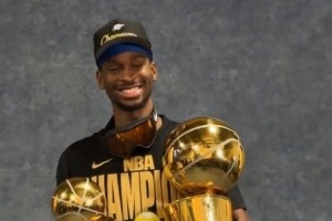賽后,亞歷山大手捧總冠軍獎(jiǎng)杯和FMVP獎(jiǎng)杯拍了定妝照。