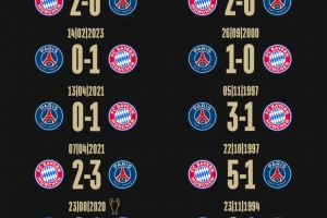 拜仁官方社媒曬出了對陣巴黎的歷史戰(zhàn)績,拜仁8勝6負(fù)略占優(yōu)勢,打進(jìn)19球丟15球。