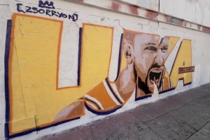 這幅壁畫是以東契奇的名字“LUKA”為背景,在字母的基礎(chǔ)上繪制了東契奇怒吼的畫像。
