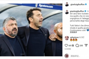 意大利國家隊領(lǐng)隊布馮社媒曬出與主帥加圖索的合照,并寫道:“昨晚比賽的結(jié)果非常重要,但更令我自豪的是藍衣軍團在賽場上展現(xiàn)的態(tài)度和個性。”