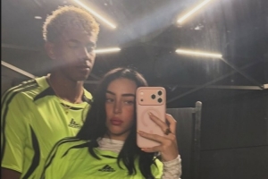 妮基-妮可社媒曬出與亞馬爾的自拍合照,亞馬爾將手放在女友的腰間,兩人動作親密。