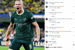 本場比賽哈蘭德破門,這已經(jīng)是他連續(xù)12場比賽取得進(jìn)球。賽后哈蘭德在社媒曬出慶祝照片,配文寫道:“只不過又是普普通通上班的一天?!?/p>