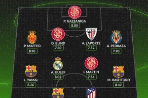 WhoScored西甲第12輪最佳陣容