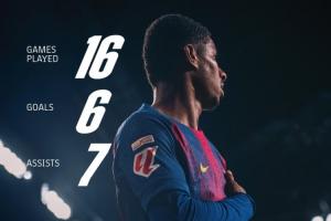 巴塞羅那官方也曬出拉什福德的數據,并且配文:16場6球7助,拉什福德勢不可擋??