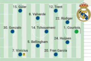 前鋒:15-居勒爾、30-貢薩洛-加西亞、7-維尼修斯
