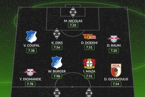 中場:揚(yáng)·迪奧曼德(萊比錫,7.78分)、沃特·伯格(霍芬海姆,7.98分)、易卜拉欣·馬扎(勒沃庫森,7.51分)、迪米特里斯·吉安努利斯(奧格斯堡,7.54分)