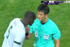 執(zhí)法本場比賽的韓國裁判高亨進(jìn)半場出示了三張黃牌,回看VAR改判點(diǎn)球。