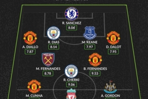 中場(chǎng): 馬特烏斯(西漢姆)、謝爾基(曼城)、B費(fèi)(曼聯(lián))