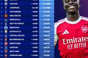 體育資訊12月10日訊 德轉(zhuǎn)更新了英超球員身價(jià),并盤(pán)點(diǎn)了目前英超球隊(duì)身價(jià)榜,具體如下:
