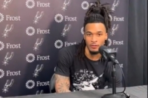 NBA杯1/4決賽,馬刺在客場(chǎng)以132-119擊敗湖人。賽后小吧采訪卡斯?fàn)枴?/p>