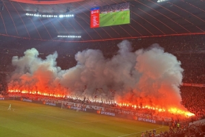 據(jù)德國媒體《圖片報(bào)》報(bào)道,比賽中的煙火是由拜仁極端球迷組織事先精心策劃的。球迷們完全清楚,如果再次發(fā)生類似事件,上賽季對陣?yán)瘴謳焐荣愃刑幍木徯烫幜P將直接觸發(fā)球迷禁賽,因此他們提前很久就策劃了這次煙火表演,以確保歐足聯(lián)的懲罰正好落在這段時(shí)間,讓禁賽在一場相對不重要的對陣圣吉羅斯的比賽中執(zhí)行,以便能在歐冠淘汰賽階段的重要比賽前“清零”處罰。