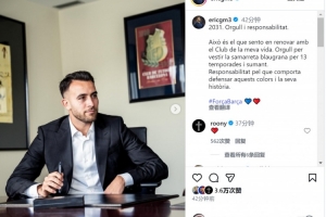 埃里克·加西亞社媒曬出續(xù)約照片,并寫(xiě)道:“2031年,自豪與責(zé)任。”