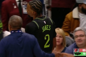 Petraitis:瓊斯先與一名裁判交談,領到第一次技術犯規(guī),隨后開始與第二名裁判交流,從而領到第二次技術犯規(guī)。