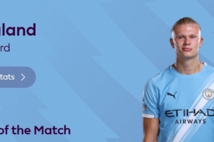 本場(chǎng)比賽哈蘭德梅開二度,賽后他也當(dāng)選英超官方評(píng)選出的本場(chǎng)最佳球員。