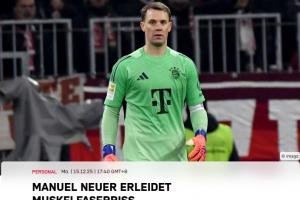 體育資訊12月15日訊 拜仁官方發(fā)布傷情公告,隊(duì)長諾伊爾在對陣美因茨比賽中肌肉纖維撕裂。