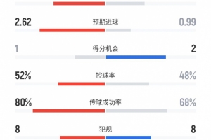 體育資訊12月16日訊 曼聯(lián)對(duì)陣伯恩茅斯的英超聯(lián)賽正在進(jìn)行中,曼聯(lián)半場(chǎng)2-1領(lǐng)先,以下是兩隊(duì)數(shù)據(jù)對(duì)比。