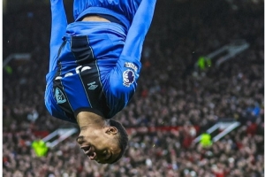 本場比賽雙方拉開架勢大打?qū)?zhàn),比賽走勢也是跌宕起伏,英超官推曬出一張伯恩茅斯球員克魯皮進(jìn)球后空翻慶祝的照片,配文寫道:“如果用一張圖片描述本場比賽的話??”