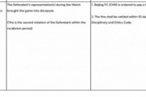亞足聯(lián)官方表示,國安的行為損害比賽聲譽(yù),違反亞足聯(lián)紀(jì)律和道德準(zhǔn)則第50.1條,這是國安第二次違規(guī),對國安處以6250美元罰款,罰款應(yīng)自本決定送達(dá)之日起30日內(nèi)支付。