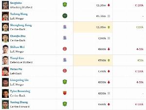 6、高天意(上海申花)70萬(wàn)歐(+5萬(wàn))
